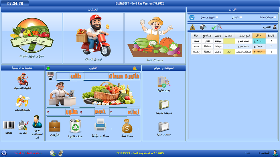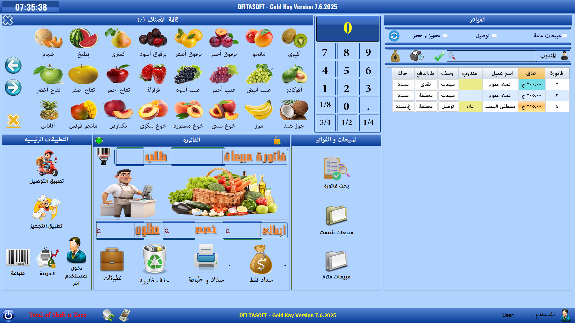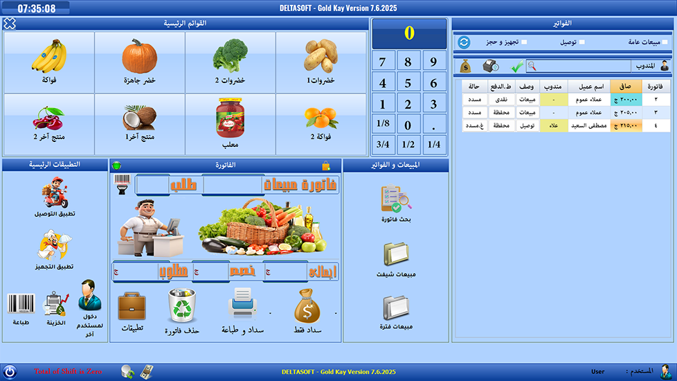 برنامج كاشير لمبيعات المتجر أو المحال بالاضافة الى الحسابات + المخازن .. برنامج متكامل لإدارة محلات و متاجر الخضروات و الفاكهة .. بيع أى صنف من خلال اتصال البرنامج بميزان ديجيتال و حساب وزن الصنف و سعره و اصدار فاتورة للمشترى .. يمكن لمدير المتجر معرفة حجم المبيعات و تفاصيل الأصناف المباعة بكل وردية أو شيفت أو طوال اليوم و من أى مكان بالعالم .. برنامج بل منظومة متكاملة تمكنك من السيطرة الكاملة على متجرك سواء بتواجدك داخله او بأى مكان بالعالم