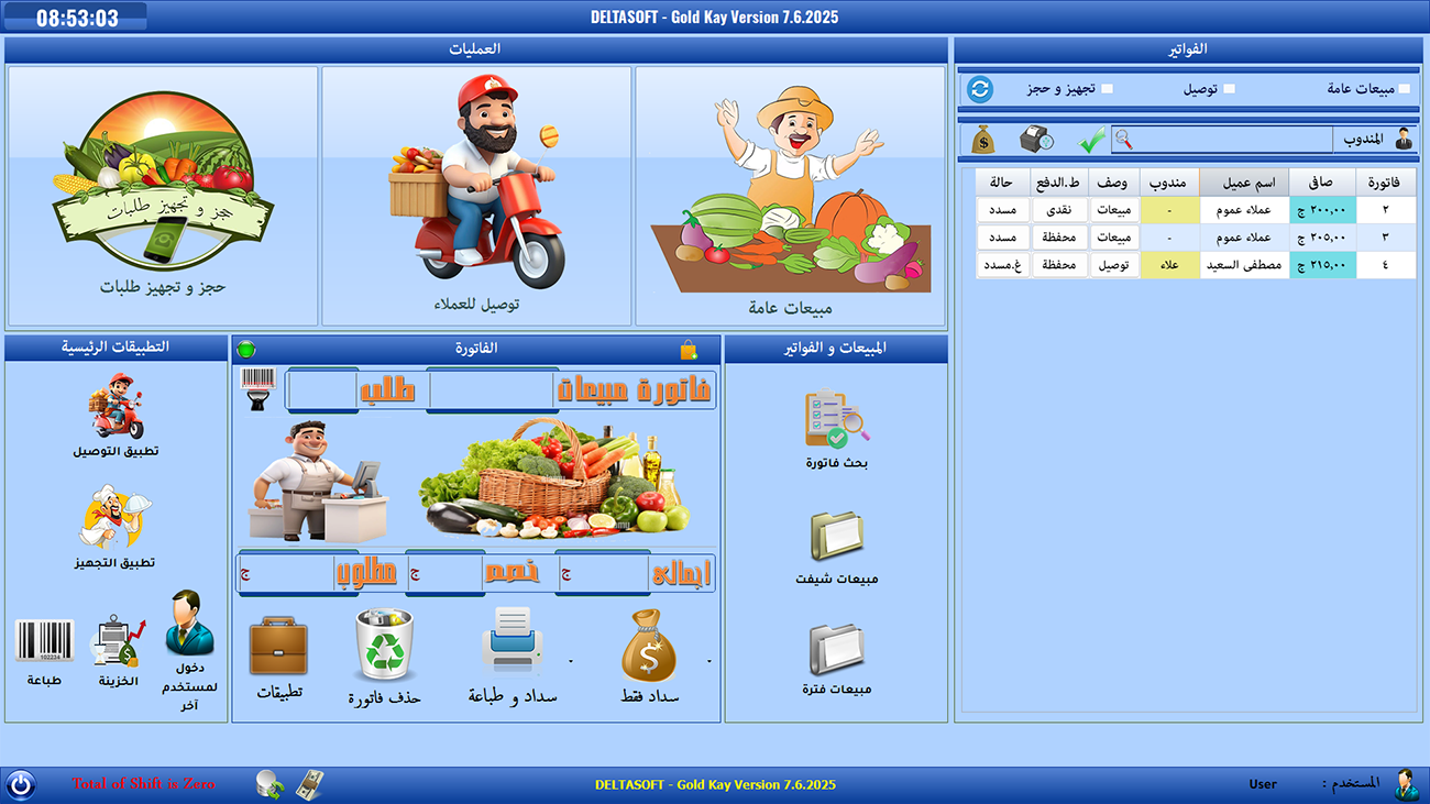 بيع لعميل المحل و توصيل الطلبات و تجهيز الطلبات